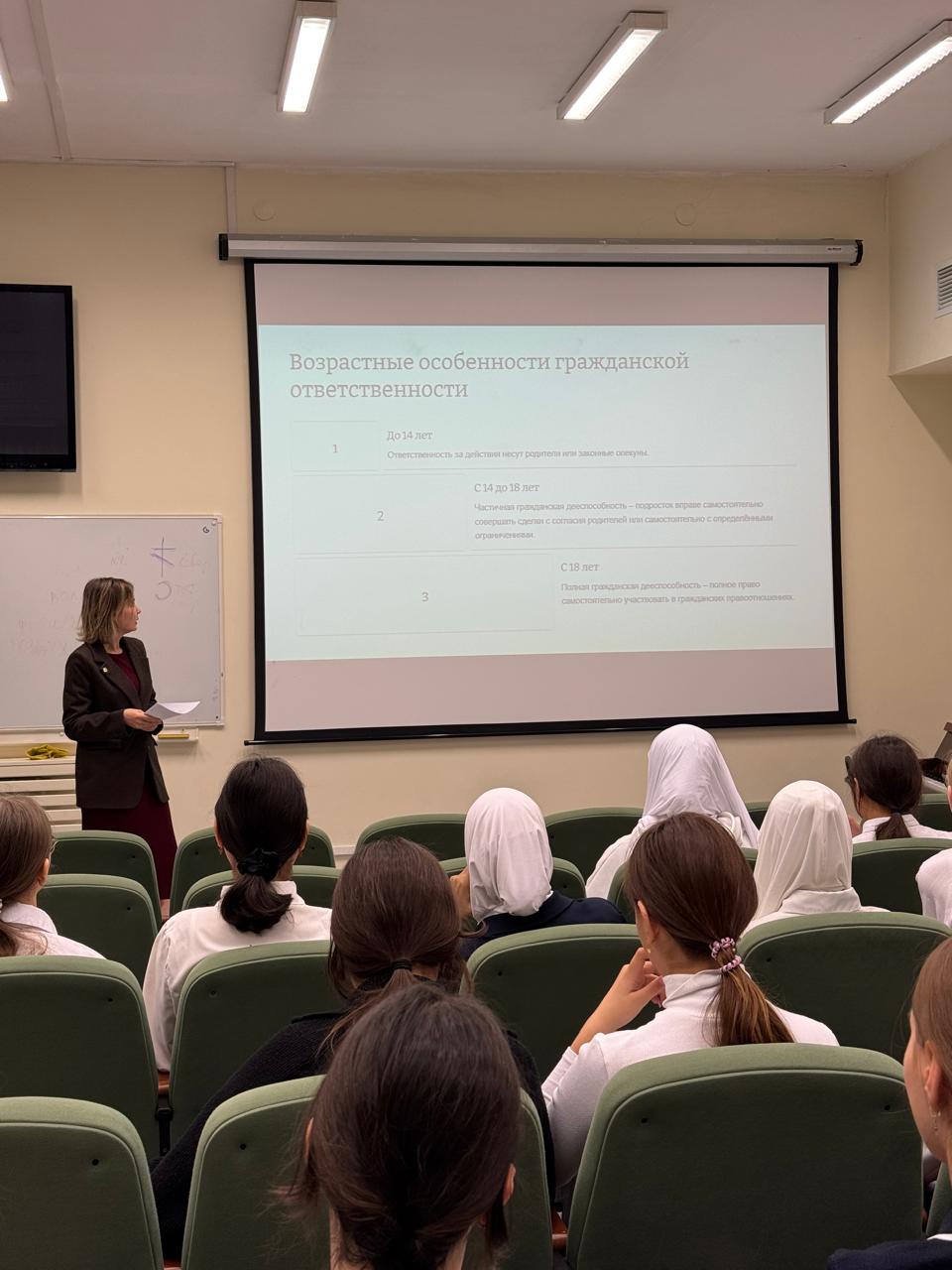 Мировым судьей судебного участка №7 по Московскому судебному району г. Казани Гафуровой Ю.М. в рамках реализации проекта Управления Судебного департамента в Республике Татарстан и Министерства образования и науки Республики Татарстан по взаимодействию школ и районных (городских) судов Республики Татарстан «Правосудие: от А до Я» был проведен тематический урок с учащимися Муниципального бюджетного общеобразовательного учреждения «Гимназия №12 с татарским языком обучения имени Ф.Г. Аитовой» Московского района г. Казани на тему «Гражданская ответственность несовершеннолетних». Ученики проявили живой интерес к теме лекции и задавали вопросы, на которые получали подробные ответы. ![]() |